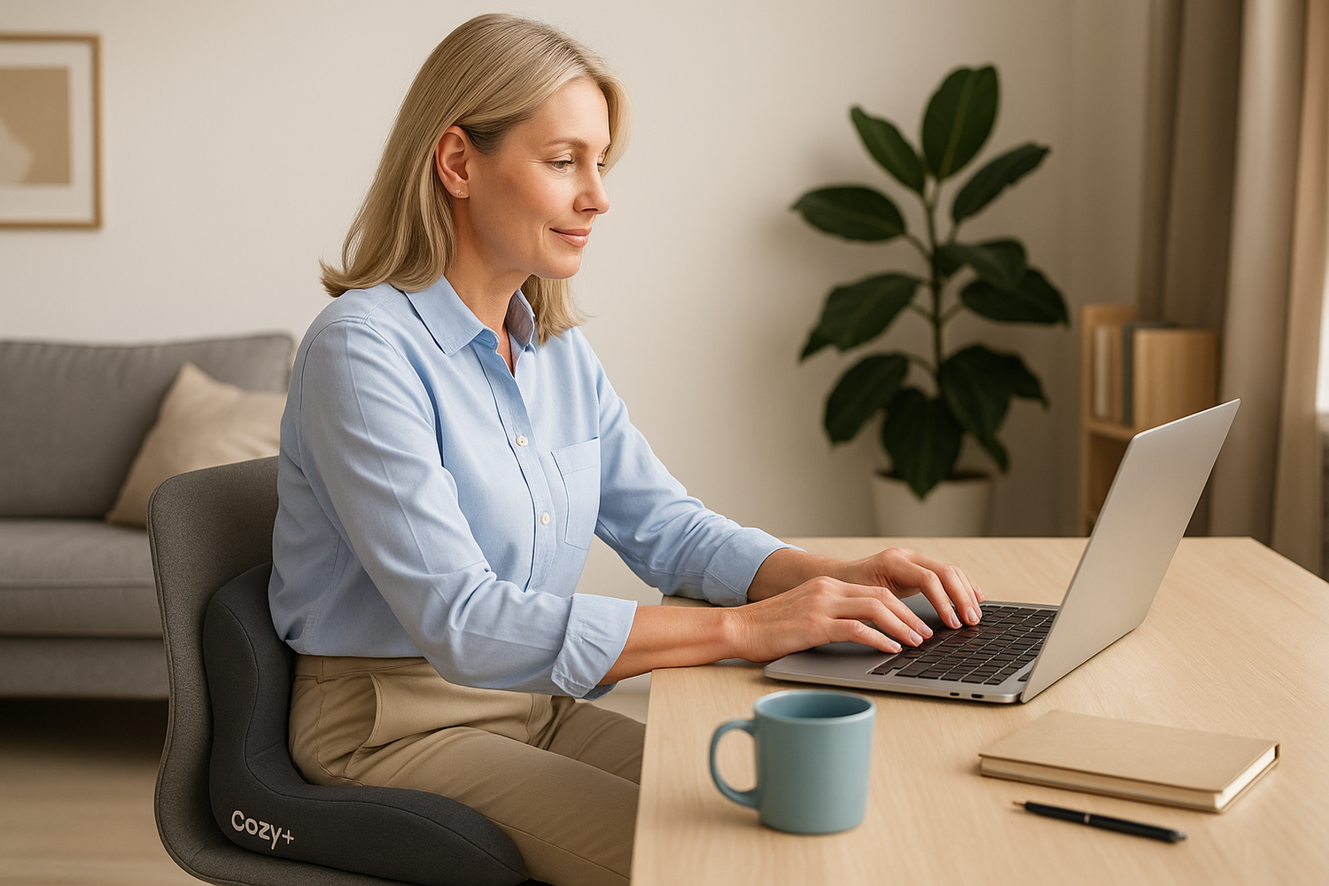 Grâce à sa mousse mémoire dense, son gel ergonomique et sa découpe anti-pression du coccyx, Cozy+ apporte un soutien précis et un confort immédiat, même lors de longues heures assises.