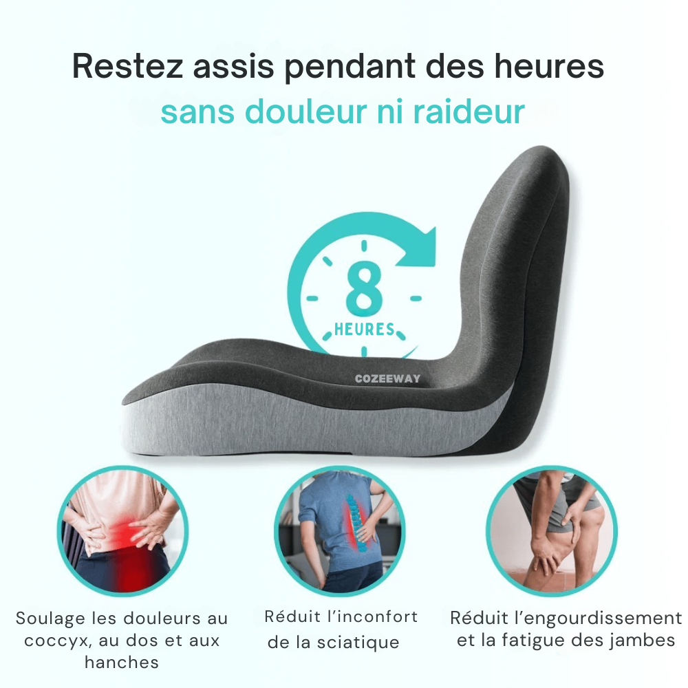 Cozeeway a conçu un coussin ergonomique haut de gamme capable de réduire la pression, d’améliorer l’alignement du dos et de soulager les tensions dès les premières utilisations.